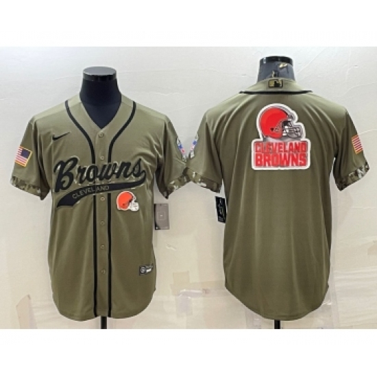 Men's Cleveland Browns Olive 2022 Salute To Service Team Big Logo Cool Base Stitched Baseball Jersey