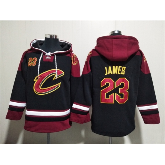 Men's Cleveland Cavaliers #23 LeBron James Black Red Ageless Must-Have Lace-Up Pullover Hoodie