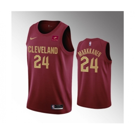 >Men's Cleveland Cavaliers #24 Lauri Markkanen Wine Icon Edition Stitched Basketball Jersey
