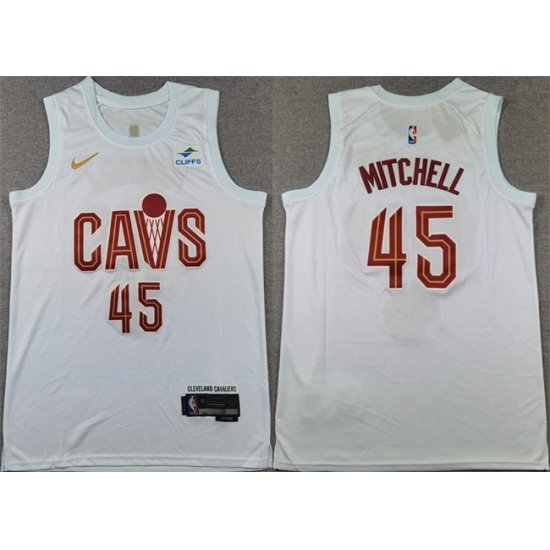 Men's Cleveland Cavaliers #45 Donovan Mitchell White Association Edition Stitched Jersey