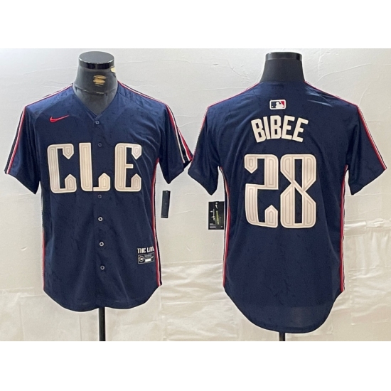 Men's Cleveland Guardians #28 Tanner Bibee Navy 2024 City Connect Limited Stitched Jersey