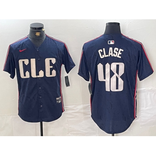 >Men's Cleveland Guardians #48 Emmanuel Clase Navy 2024 City Connect Limited Stitched Jersey