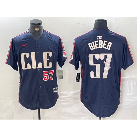 >Men's Cleveland Guardians #57 Shane Bieber Number Navy 2024 City Connect Limited Stitched Jerseys