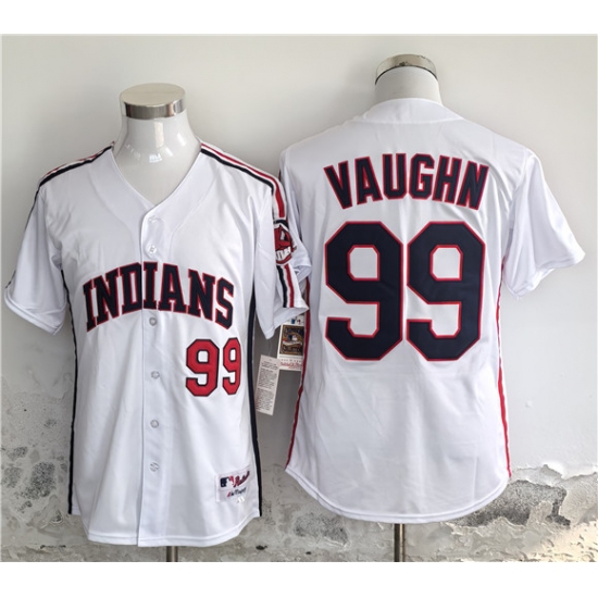 >Men's Cleveland Guardians #99 Ricky Vaughn White Stitched Baseball Jersey
