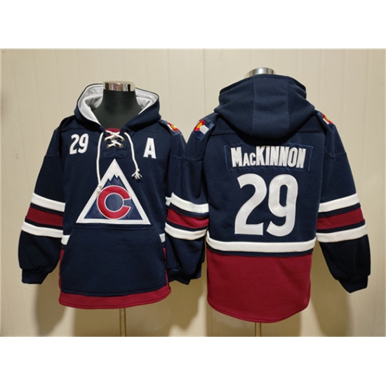 >Men's Colorado Avalanche #29 Nathan MacKinnon Navy All Stitched Sweatshirt Hoodie