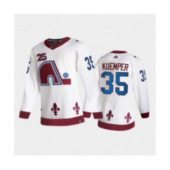 >Men's Colorado Avalanche #35 Darcy Kuemper White 2021 Retro Special Edition Stitched NHL Jersey