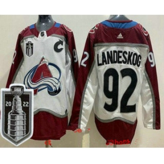 Men's Colorado Avalanche #92 Gabriel Landeskog White 2022 Stanley Cup Stitched Jersey
