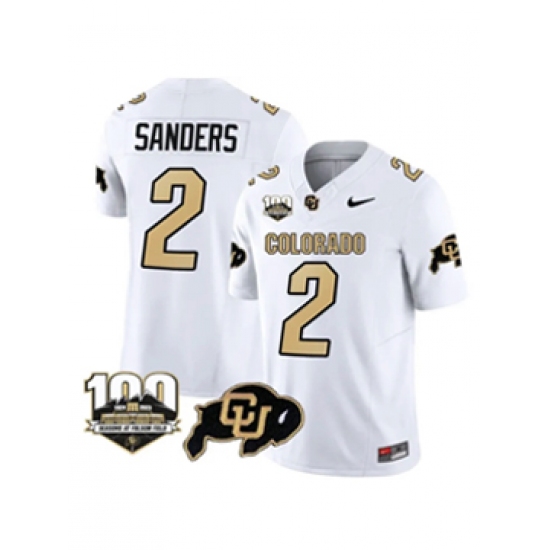 Men's Colorado Buffaloes #2 Sanders White Vapor Stitched Jersey - 100th Seasons At Folsom Field