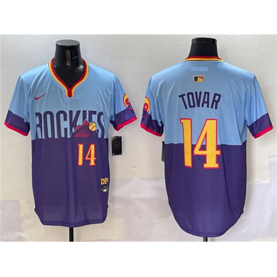 Men's Colorado Rockies #14 Ezequiel Tovar Purple Light Blue 2025 City Connect Limited Stitched Baseball Jersey
