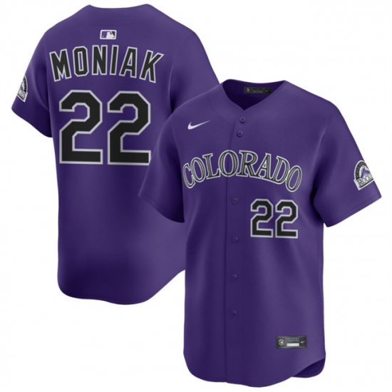 >Men's Colorado Rockies #22 Mickey Moniak Purple Limited Stitched Baseball Jersey