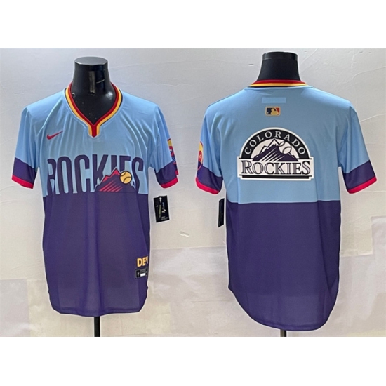 >Men's Colorado Rockies Team Big Logo Purple Light Blue 2025 City Connect Limited Stitched Baseball Jersey