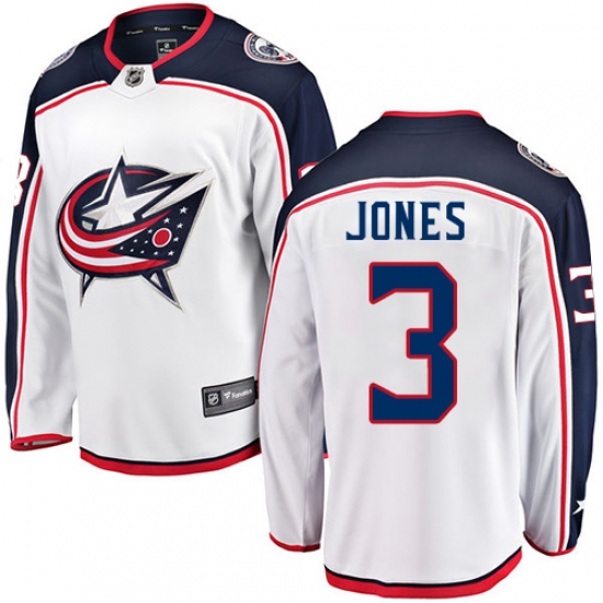 Men's Columbus Blue Jackets #3 Seth Jones Fanatics Branded White Away Breakaway NHL Jersey