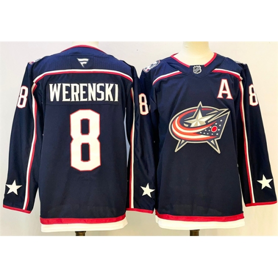 Men's Columbus Blue Jackets #8 Zach Werenski Navy With A Stitched Hockey Jersey