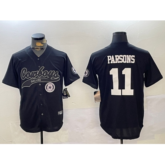 Men's Dallas Cowboys #11 Micah Parsons Black With Cool Base Stitched Baseball Jersey