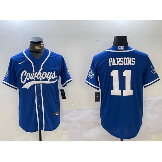 >Men's Dallas Cowboys #11 Micah Parsons Light Blue Stitched Cool Base Nike Baseball Jersey