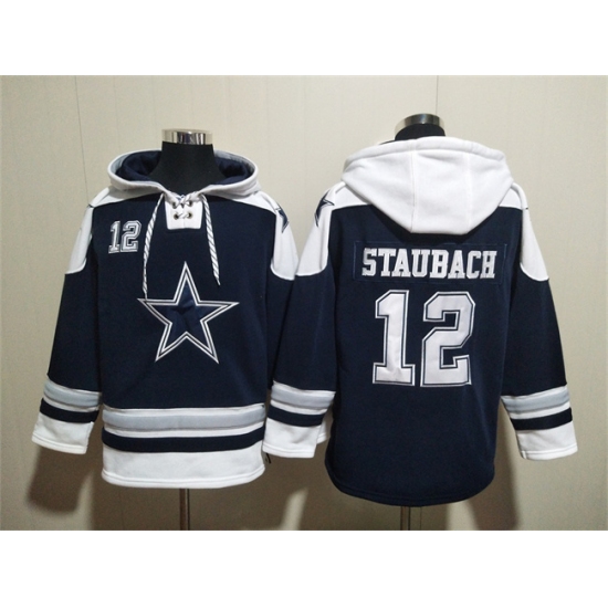 Men's Dallas Cowboys #12 Roger Staubach Navy Ageless Must-Have Lace-Up Pullover Hoodie
