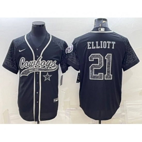 Men's Dallas Cowboys #21 Ezekiel Elliott Black Reflective With Patch Cool Base Stitched Baseball Jersey