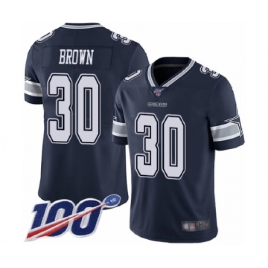 >Men's Dallas Cowboys #30 Anthony Brown Navy Blue Team Color Vapor Untouchable Limited Player 100th Season Football Jersey