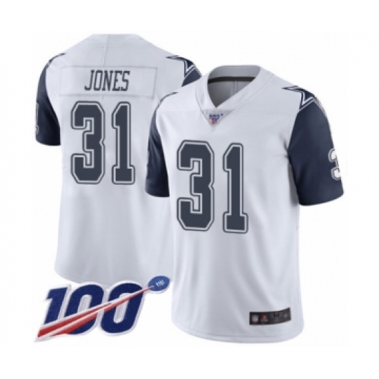 >Men's Dallas Cowboys #31 Byron Jones Limited White Rush Vapor Untouchable 100th Season Football Jersey