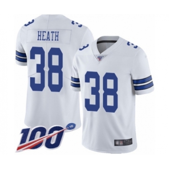 >Men's Dallas Cowboys #38 Jeff Heath White Vapor Untouchable Limited Player 100th Season Football Jersey