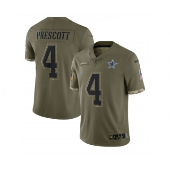 Men's Dallas Cowboys #4 Dak Prescott 2022 Olive Salute To Service Limited Stitched Jersey