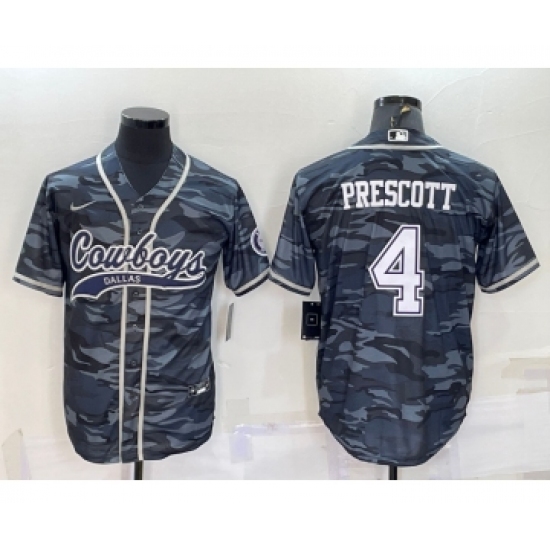Men's Dallas Cowboys #4 Dak Prescott Grey Camo With Patch Cool Base Stitched Baseball Jersey