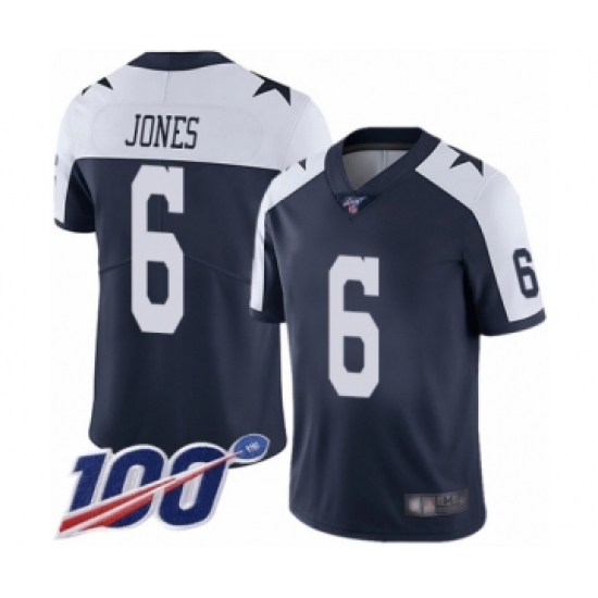 >Men's Dallas Cowboys #6 Chris Jones Navy Blue Throwback Alternate Vapor Untouchable Limited Player 100th Season Football Jersey
