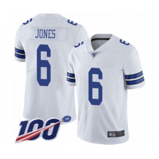 >Men's Dallas Cowboys #6 Chris Jones White Vapor Untouchable Limited Player 100th Season Football Jersey