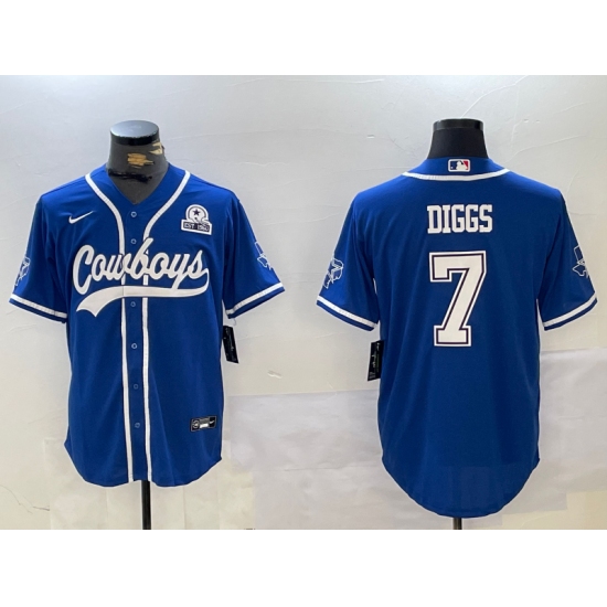 >Men's Dallas Cowboys #7 Trevon Diggs Light Blue With 1960 Cool Base Stitched Baseball Jersey