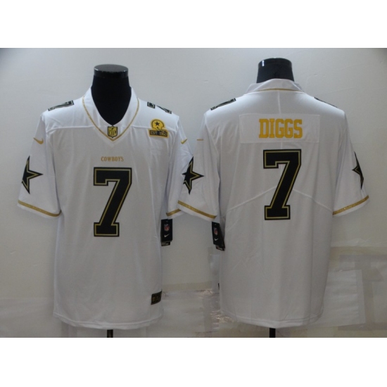 Men's Dallas Cowboys #7 Trevon Diggs White Gold Limited Player Jersey