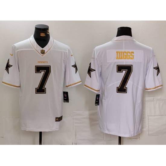 Men's Dallas Cowboys #7 Trevon Diggs White Golden Edition Limited Football Stitched Jersey