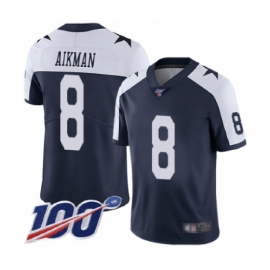 Men's Dallas Cowboys #8 Troy Aikman Navy Blue Throwback Alternate Vapor Untouchable Limited Player 100th Season Football Jersey