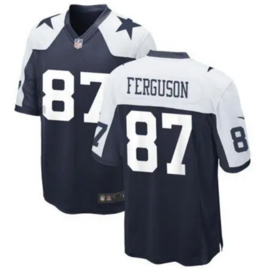 >Men's Dallas Cowboys #87 Jake Ferguson White Navy Vapor Limited Stitched Jersey