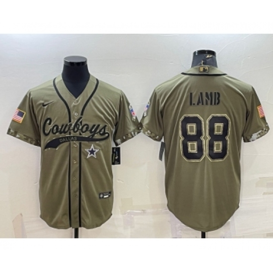 >Men's Dallas Cowboys #88 CeeDee Lamb 2022 Olive Salute to Service Cool Base Stitched