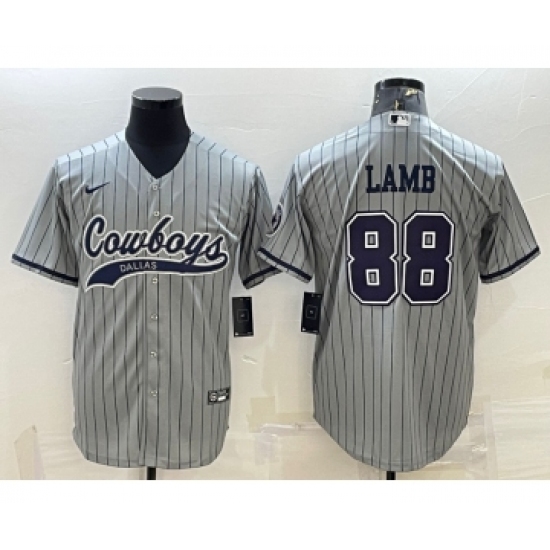 >Men's Dallas Cowboys #88 CeeDee Lamb Grey With Patch Cool Base Stitched Baseball Jersey