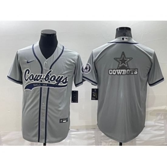 Men's Dallas Cowboys Grey Team Big Logo With Patch Cool Base Stitched Baseball Jersey