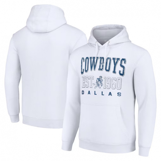 >Men's Dallas Cowboys White Throwback Logo Pullover Hoodie