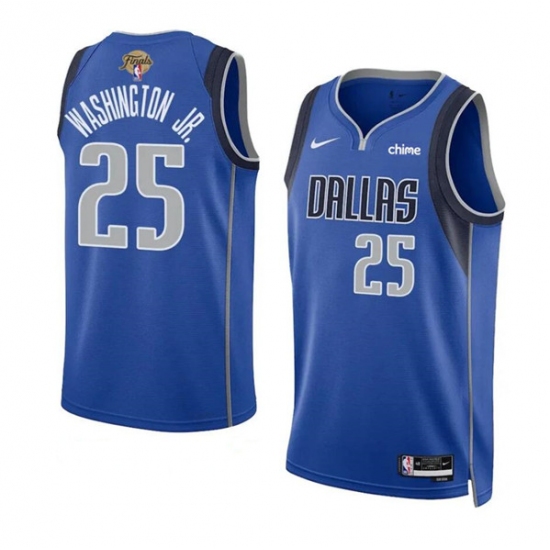 Men's Dallas Mavericks #25 P.J. Washington Jr. Blue 2024 Finals Icon Edition Stitched Basketball Jersey