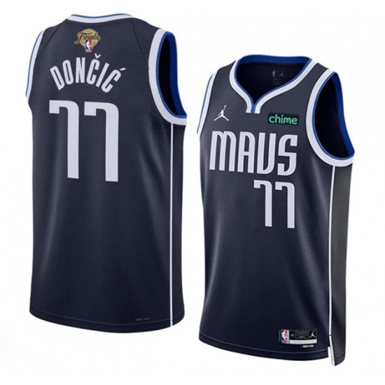 Men's Dallas Mavericks #77 Luka Doncic Navy 2024 Finals Statement Edition Stitched Basketball Jersey