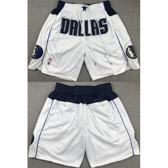 >Mens Dallas Mavericks White Shorts (Run Small)