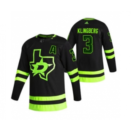 Men's Dallas Stars #3 John Klingberg Black 2020-21 Reverse Retro Alternate Hockey Jersey
