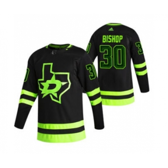 Men's Dallas Stars #30 Ben Bishop Black 2020-21 Reverse Retro Alternate Hockey Jersey
