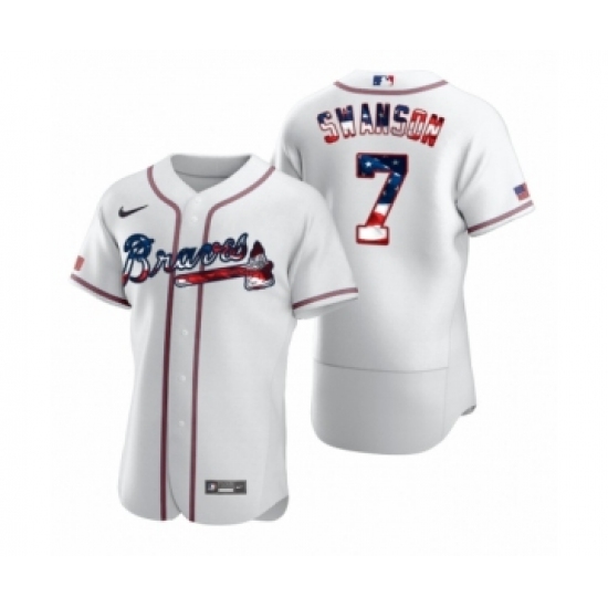 Men's Dansby Swanson #7 Atlanta Braves White 2020 Stars & Stripes 4th of July Jersey