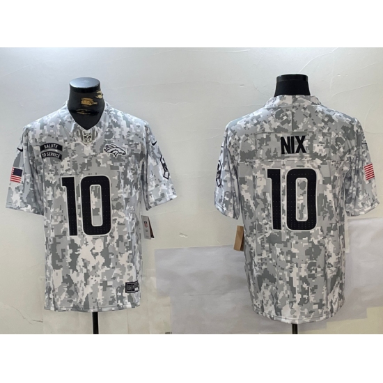 >Men's Denver Broncos #10 Bo Nix Arctic Camo 2024 FUSE Salute to Service Limited Stitched Jersey