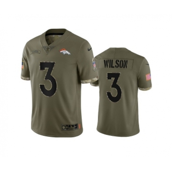 Men's Denver Broncos #3 Russell Wilson 2022 Olive Salute To Service Limited Stitched Jersey