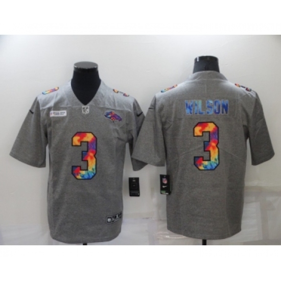 Men's Denver Broncos #3 Russell Wilson Multi-Color Greyheather 2020 Crucial Catch Football Jersey