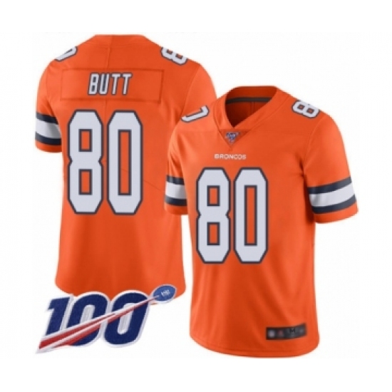 Men's Denver Broncos #80 Jake Butt Orange Team Color Vapor Untouchable Limited Player 100th Season Football Jersey