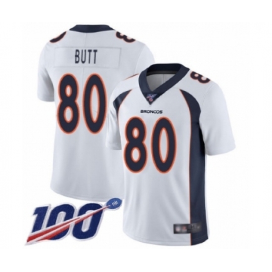Men's Denver Broncos #80 Jake Butt White Vapor Untouchable Limited Player 100th Season Football Jersey