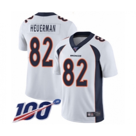 >Men's Denver Broncos #82 Jeff Heuerman White Vapor Untouchable Limited Player 100th Season Football Jersey