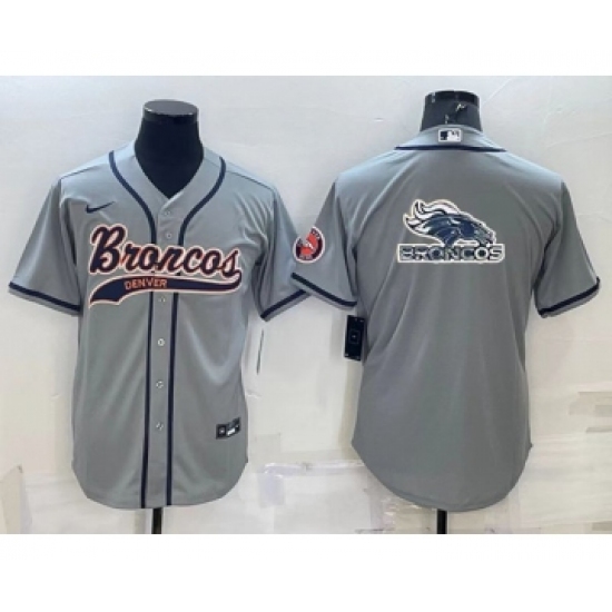 Men's Denver Broncos Gray Team Big Logo With Patch Cool Base Stitched Baseball Jersey